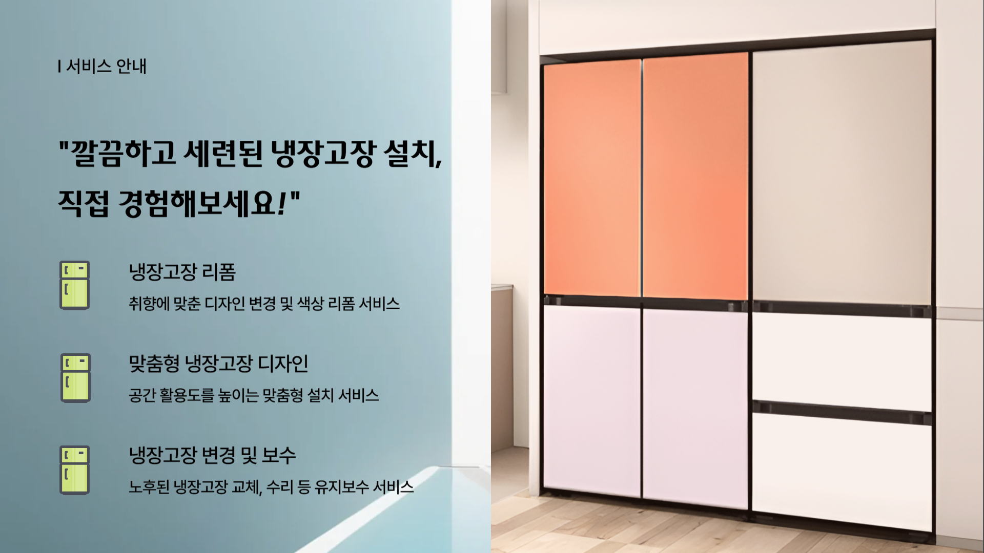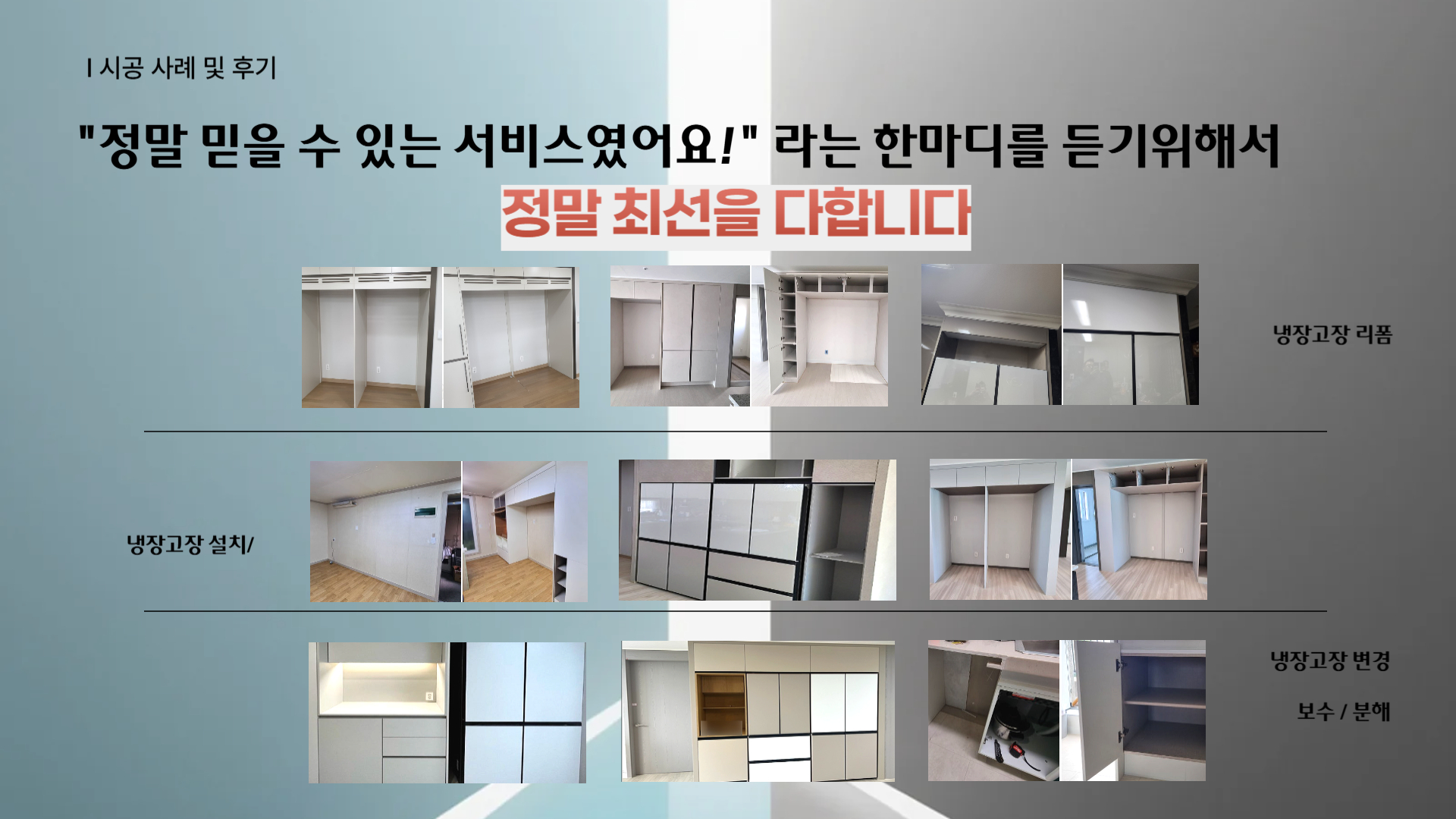 냉장고장을 리폼하여 더욱 만족스러운 공간을 만들어 드립니다.